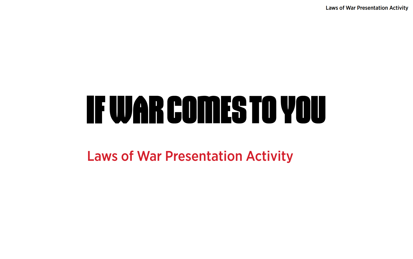 These short overviews can be used to explain the laws of war during your session, and for the optional research activity. They can also be used to help facilitators prepare.